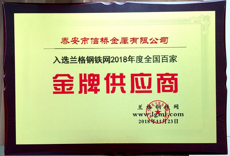 會(huì)議過后后,是眾多鋼企,鋼貿(mào)商期待的頒獎(jiǎng)環(huán)節(jié),泰安市信橋金屬有限公司再獲殊榮,榮獲蘭格網(wǎng)“2018年度全國(guó)百家金牌供應(yīng)商稱號(hào)”。頒獎(jiǎng)現(xiàn)場(chǎng)熱鬧非凡,參會(huì)人員倍感榮幸。